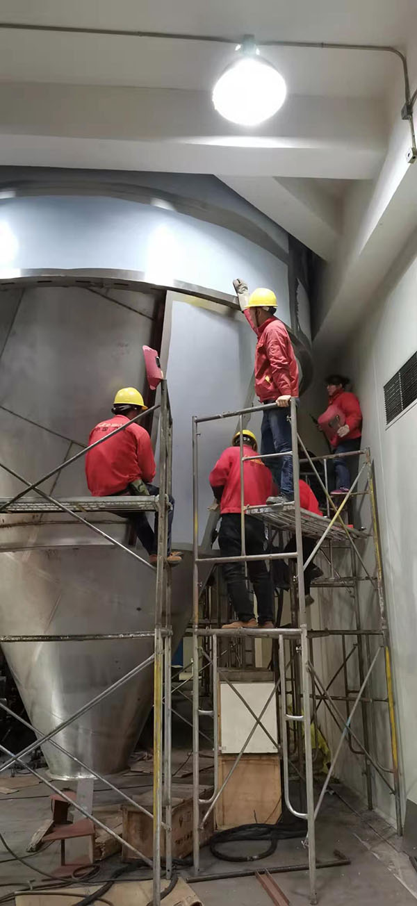 一群人,一顆心,一股勁。每一次的破繭成蝶,靠的都是真槍實干。意氣風發的施工者不畏現場環境惡劣,不懼操作環境險阻。在施工現場搭棚子住宿,吃飯沒有桌子和凳子。現場空間小,吊車沒法進來,設備組件都是靠著人工抬到三樓。項目施工耗時長,從黎明破曉到夜幕降臨,在照明不足的情況下,工作難度無疑明顯加劇,但是力馬人將險阻一次次破解,將作業難題一道道攻破。